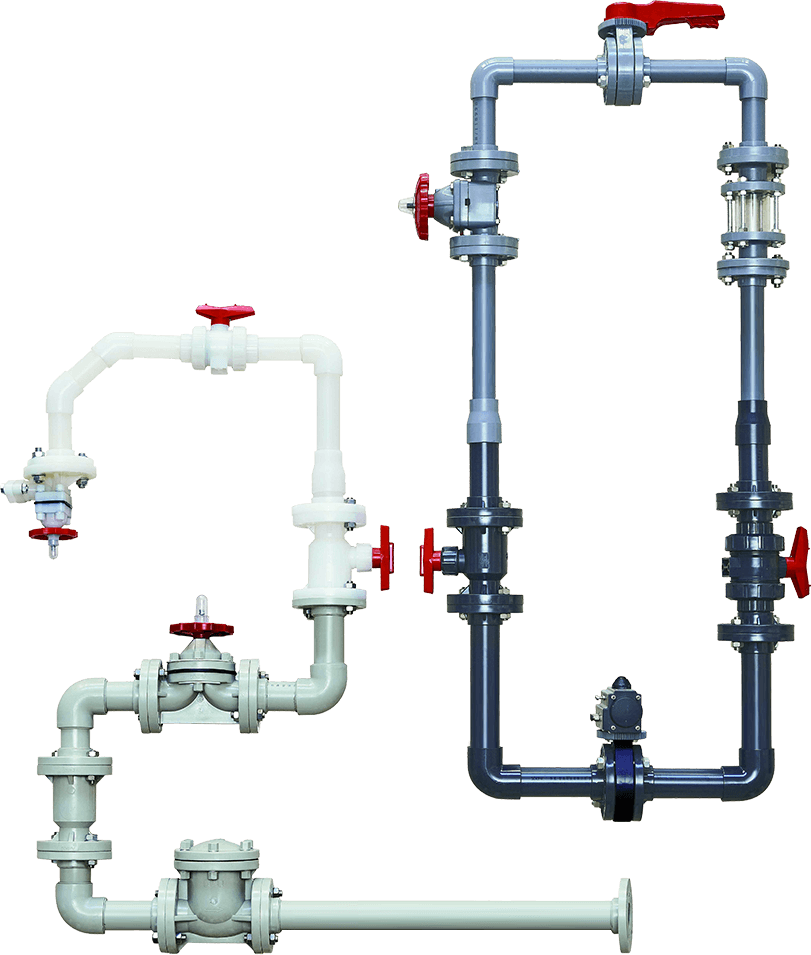 閥門(mén)系列產(chǎn)品如:隔膜閥、蝶閥、球閥、截止閥、止回閥、耐腐蝕泵等。主要材質(zhì)有CPVC、UPVC、PVDF、PPH、FRPP等。